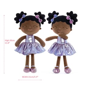 Gloveleya Presentes para bebês, bonecas, boneca macia com ilusão curvilínea, preta, roxa, 30,5 cm, linda boneca de pelúcia roxa para meninas: esta boneca macia Gloveleya está vestida com um vestido roxo brilhante, tornando-a uma companheira elegante e adorável para meninas de 0 a 6 anos. Seus materiais macios e confortáveis o tornam perfeito para abraçar, enquanto seu design seguro garante tranquilidade para os pais. Seja para brincar ou sonecar, esta boneca é um ótimo presente para crianças pequenas. Palavras-chave: Boneca, bonecas macias, primeiro bebê, boneca para 1 ano de idade. - Materiais macios e seguros: feita de materiais de pelúcia e não tóxicos, esta boneca Gloveleya é macia, fofa e segura para bebês e crianças, proporcionando tranquilidade para os pais. - Vestido roxo brilhante e laços combinando – Esta boneca de pelúcia vem vestida com um vestido roxo brilhante, com dois adoráveis laços combinando no cabelo, tornando-a elegante e divertida para as meninas. - Tamanho perfeito para mãos pequenas – Leve e projetada para ter o tamanho perfeito para crianças segurarem, esta boneca é fácil de carregar e abraçar durante a hora de brincar. - Características bordadas para segurança – o rosto da boneca é delicadamente bordado com um sorriso doce, olhos fechados gentis e bochechas rosadas, tornando-o seguro e charmoso. - Durável e fácil de limpar – Projetada para diversão duradoura, esta boneca de pelúcia é durável o suficiente para brincadeiras diárias e é fácil de limpar, garantindo que permaneça fresca e pronta para brincar. - Seguro para bebês e crianças pequenas – a boneca de pelúcia não tem peças pequenas, garantindo que seja segura para bebês e crianças brincarem, o que a torna uma ótima opção para presentes para recém-nascidos. - Adoráveis sapatos roxos combinando – a boneca vem com sapatos roxos macios combinando, complementando perfeitamente seu vestido roxo brilhante para um visual coeso e elegante. - ?Presente ideal para feriados e aniversários – Seja para o Natal, aniversário ou qualquer ocasião especial, esta boneca Gloveleya é o presente perfeito para meninas de 0 a 6 anos. - Estimula o desenvolvimento emocional – Brincar com esta boneca de pelúcia ajuda as crianças a desenvolver habilidades emocionais e sociais enquanto fingem cuidar do bebê. - Companheiro de viagem perfeito – Leve e fácil de embalar, esta boneca é a companheira de viagem ideal para crianças, proporcionando conforto e diversão em movimento.
