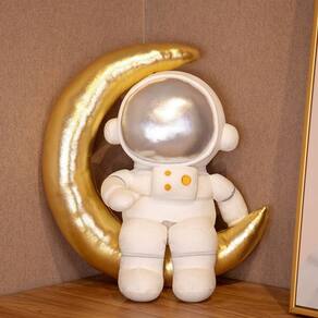 Material: pelúcia Tamanho: 35 cm Peso: 400 g Design adorável de astronauta — Este lindo brinquedo de pelúcia para astronautas apresenta um simpático urso em um traje espacial branco, sentado em uma lua crescente dourada brilhante, criando um tema espacial extravagante e divertido. Macio e confortável — Feito de material de pelúcia de alta qualidade, este brinquedo é perfeito para abraçar, tornando-o um companheiro ideal para dormir ou brincar. Sua suavidade garante conforto durante cochilos ou descanso. Tamanho perfeito para crianças — Medindo 35 cm, esta pelúcia de astronauta tem o tamanho perfeito para as crianças carregarem ou usarem como peça decorativa em camas, sofás ou prateleiras. Durável e seguro — Feito com materiais seguros para crianças, este brinquedo de pelúcia é durável para uso diário, além de ser suave para a pele, garantindo segurança e diversão duradoura. Decoração com tema espacial — Esta pelúcia de astronauta, com sua lua dourada, dá um toque único a qualquer ambiente com tema espacial. É perfeito para decorar quartos, creches ou até salas de jogos para crianças que amam o espaço sideral.