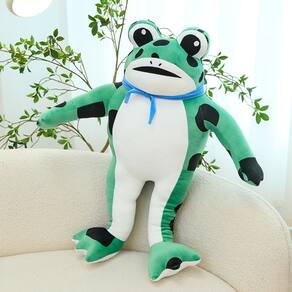 Material: pelúcia Tamanho: 70 cm Peso: 740 g Design cômico de sapo de desenho animado — apresenta um sapo alto e esbelto com manchas pretas, um lenço azul e uma expressão peculiar, adicionando um toque divertido e criativo. Macio e recheado para maior conforto — Feito de tecido de pelúcia premium com enchimento macio, oferecendo uma textura aconchegante e abraçável, perfeita para abraçar ou relaxar. Construção durável e segura — Costuras reforçadas e materiais adequados para crianças garantem durabilidade duradoura e uso seguro para crianças e colecionadores de pelúcia. Perfeito para brincar e decorar a casa — funciona como uma boneca de pelúcia para brincadeiras criativas, uma decoração de quarto divertida ou uma almofada criativa para camas e sofás. Tamanho grande e leve — mede 70 cm, o que a torna uma excelente decoração de pelúcia que ainda é fácil de transportar e exibir em quartos ou salas de jogos.