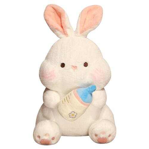 Material: pelúcia Tamanho: 40 cm Peso: 400 g Charming Baby Bunny Design — Apresenta um coelho branco redondo e rechonchudo segurando uma linda mamadeira, com blush rosa suave e orelhas compridas e caídas para um look adorável. Textura macia e confortável — Feito de tecido de pelúcia premium que é suave na pele, proporcionando um toque aconchegante e reconfortante para as crianças. Postura sentada estável — Projetada na posição sentada, facilitando a exibição em camas, sofás ou prateleiras como um toque decorativo e divertido. Durável e seguro para crianças — Feito com costura de alta qualidade e materiais adequados para crianças, garantindo um uso duradouro e brincadeiras sem preocupações. Estilo inspirado em desenhos animados — combina um tema de animais fofos com detalhes divertidos, tornando-o atraente tanto para crianças quanto para colecionadores de pelúcia que amam bonecas macias e fofinhas.