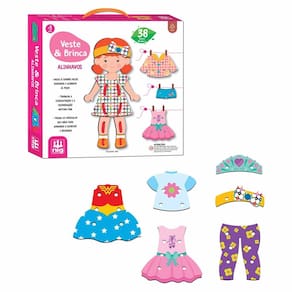 Boneca de Madeira - Alinhavos - Veste e Brinca - Nig Brinquedos: alinhavar é uma atividade importante para treinar a coordenação motora fina e preparar a criança para escrever e desenhar. Essa é uma atividade Montessori e traz outros benefícios como desenvolver a coordenação olho – mão, percepção espacial e concentração. Como brincar? • Passe o cordão pelos furinhos e alinhave as peças Detalhes: • 38 peças para brincar de montão e criar diversas combinações • Nesse kit, a criança encontra 01 boneca de 26 cm e 37 pecinhas com lindas roupinhas e acessórios • Tudo em madeira • O box acompanha 06 cadarços coloridos para prender as peças • Estimula a criatividade e o faz de conta Informações: • Produto: Boneca Veste e Brinca Alinhavos • Marca: NIG Brinquedos • Tipo: Boneca Alinhavos com Acessórios • Categoria: Bonecas e Cia • Subcategoria: Bonecas • Tamanho: 26 cm (altura) • Conteúdo: - 01 Boneca em Madeira - 37 roupinhas e acessórios em madeira - 06 Cordões Coloridos • Recomendação: para crianças a partir de 03 anos de idade Especificações: • Referência: 0474 • Código de Barras: 7896200704748 • Embalagem (C x A x L): 32 x 34 x 07 cm • Embalagem (Peso): 0.724 kg • Material / Composição: Madeira MDF • Registro: 006159/2021 • Certificado: Órgãos Autorizados - OCP´S (Organismos de Certificação de Produtos) Aviso: • As imagens são meramente ilustrativas • Os pesos, tamanhos e medidas são aproximados • As cores e estampas dos produtos podem ter variações • As informações são de responsabilidade do fabricante ou fornecedor
