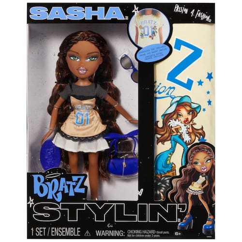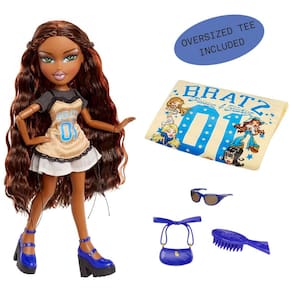 As Bratz estão de volta com novos visuais estilosos, e desta vez querem compartilhar sua paixão pela moda com você! Esta boneca Bratz vem com uma camiseta combinando para você personalizar. Moda individual, paixões correspondentes! Sasha personalizou sua camiseta gráfica transformando-a em um lindo vestido. Combinado com uma saia branca, sapatos Mary Jane azuis, uma bolsa combinando e óculos de sol. Seu cabelo é longo com tranças emoldurando o rosto, e seu visual apresenta um glamour suave com um batom de tom frio. COMPARTILHANDO A MODA: Acompanha uma camiseta gráfica para você vestir! ESTILO SUA CAMISETA: Corte, ajuste e faça dela sua - esta exclusiva camiseta gráfica oversized Stylin é feita para combinar com seu estilo e o de suas bonecas! ACESSORIZE: Acessórios combinando para aprimorar o visual. INCLUI 1 Boneca Bratz Stylin, 1 camiseta, 1 saia, 1 bolsa, 1 par de óculos de sol e 1 escova, além de uma camiseta gráfica adulta XL para você personalizar e combinar com sua boneca.