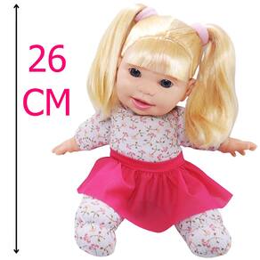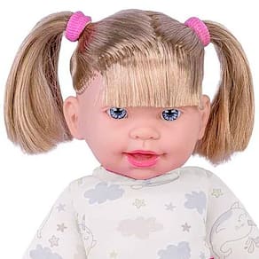 • Com uma cabeça e mãos de vinil e um corpinho de tecido macio e aconchegante, essa boneca e perfeita para abraçar e brincar.