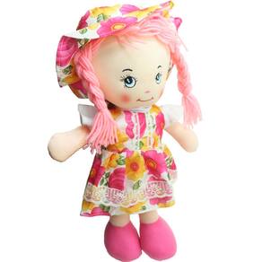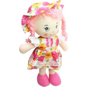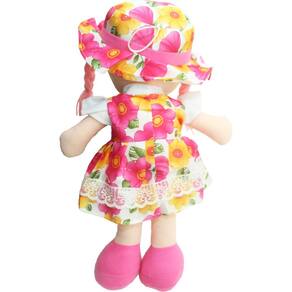 Boneca De Pano Pelúcia Vestido Rosa Menina Com Chapéu 46cm -