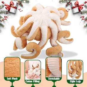 Procurando o presente perfeito que trará alegria para pessoas de todas as idades? Não procure mais, pois nosso brinquedo de pelúcia colorido e fofinho de polvo! Feito com materiais de qualidade premium, este brinquedo de pelúcia é 100% algodão e recheado com material de algodão PP macio e durável. É seguro, suave e confortável de abraçar, o que o torna perfeito para crianças, meninas, meninos, bebês, bebês e crianças. O polvo fofo e macio apresenta adoráveis detalhes faciais e oculares costurados, garantindo segurança para todas as idades. Suas pernas são elásticas e podem ser facilmente esticadas e enroladas para trás. A cabeça não é sobrecarregada, tornando-a macia e abraçável. Escolha entre 7 lindas cores - azul, marrom, rosa, branco, roxo, verde e multicolorido - e tamanhos que variam de 17 a 81 cm. - 100% algodão material polvo bicho de pelúcia: este brinquedo de pelúcia de polvo colorido de 8 patas é feito de capa de tecido de pelúcia curta extramacia, durável e recheado com material de algodão PP de alta qualidade. É fofo, macio e confortável para envolver os tentáculos em torno de seus braços e pernas. A pelúcia de animais marinhos de pelúcia é uma ótima companhia para o sono, fornece suporte emocional e pode ser uma fonte de conforto durante momentos de desconforto, estimula a criatividade e a imaginação das crianças. - Pelúcia de polvo fofa e macia: as características faciais e oculares são muito fofas e costuradas, sem botões ou plástico. Bichos de pelúcia macios são completamente macios, sem partes duras. As pernas são elásticas, podem ser facilmente esticadas e estourar de volta para encaracolar. A cabeça não fica sobrecarregada, tornando-a muito macia e abraçável. O polvo de 18 cm vem com ventosa anexada e o outro tamanho de polvo tem um pequeno laço de corda trançada na cabeça. - Dimensões do brinquedo de pelúcia de polvo: tamanho grande 61 cm, altura da cabeça 34,5 cm, circunferência da cabeça 70 cm. Cinco cores sólidas, azul, marrom, rosa, branco, roxo e quatro tamanhos de brinquedos de 7/16/24/81.3 cm são fornecidos para escolher. Temos o tamanho certo para cada sessão de abraço, garantindo conforto e alegria para todas as idades. Escolha uma cor e tamanho que ressoem, tornando cada bicho de pelúcia um tesouro personalizado que é tão único quanto as pessoas que o adoram. - Escolha perfeita para presente de polvo: leve para casa um amigo polvo de pelúcia que é tão especial quanto os sorrisos que eles criarão. Independentemente da idade, ainda é o companheiro mais doce e fofo para crianças, meninas, meninos, bebês, crianças, amigos, aniversário, Dia das Crianças, Dia das Bruxas, Dia de Ação de Graças, Dia dos Namorados, Dia de Natal, etc. Não é apenas um ótimo parceiro para pegar enquanto assiste a um filme ou lê um livro, mas também perfeito como um travesseiro grande para abraçar mesmo durante o sono. - Embalagem a vácuo: esta pelúcia fofinha de polvo chegará em um saco a vácuo. Para restaurar rapidamente a maciez dos brinquedos de pelúcia embalados a vácuo, comece removendo cuidadosamente o brinquedo de sua embalagem a vácuo. Agite suavemente por alguns minutos, permitindo que as fibras comecem a voltar à forma. Ou secar na secadora com temperatura mais baixa. Ou use suas mãos para remodelá-lo suavemente enquanto ainda está ligeiramente úmido, permitindo que a umidade restante ajude as fibras a se expandirem naturalmente.