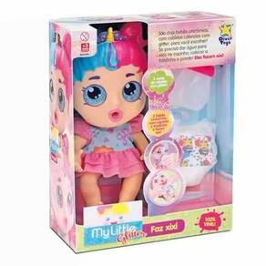 Boneca de Vinil - My Little Glitter - Faz Xixi Cabelo Azul - Divertoys: essa linda boneca bebê tem penteado de unicórnio e cabelo colorido com glitter. Só precisa dar água para ela na mamadeira, colocar a fraldinha e pronto! Ela faz xixi! Detalhes • 100% em vinil macio e perfumado: proporcionando uma experiência de toque agradável e realista • Vem com acessórios lúdicos como: fraldinha, mamadeira e roupinha linda • Produzido toda em vinil macio e perfumado • Com traços delicados e encantadores Informações: • Produto: Boneca Bebê My Little Glitter Faz Xixi • Marca: Divertoys • Coleção: My Little Glitter • Tipo: Boneca com Acessórios • Categoria: Boneca Bebê com Acessórios • Tamanho aproximado: Boneca 25 cm (altura) • Conteúdo: - 01 Boneca - 01 Mamadeira - 01 Fralda descartável • Recomendação: para crianças a partir de 03 anos de idade Especificações: • Modelo: My Little Glitter Faz Xixi Cabelo Azul • Referência: 8282 • Código de Barras: 7898639382825 • Embalagem (C x A x L): 22 x 29 x 13 cm • Embalagem (Peso): 0.553 kg • Material / Composição: - Boneca: toda em vinil macio - Roupinha: tecido - Acessórios: termoplástico • Registro: 002410/2022 • Certificado: Órgãos Autorizados - OCP´S (Organismos de Certificação de Produtos) Aviso: • As imagens são meramente ilustrativas • Os pesos, tamanhos e medidas são aproximados • As cores e estampas dos produtos podem ter variações • As informações são de responsabilidade do fabricante ou fornecedor