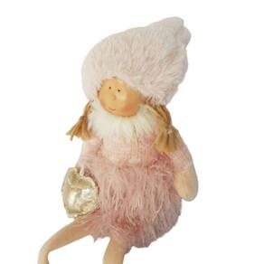 Boneca sentada com estrutura em fibra sintética com ;pernas dobráveis em feltro. ;Ela veste blusa de fios rosa, saia de poliéster com fios sintéticos rosa e gorro rosa. A gola da blusa e a barra das botas em pele com fios dourados, os cabelos com fios de lã na cor nude e a bolsinha em formato de coração dourada, são um charme a parte que deixa ela ainda mais fofa e charmosa. Bonequinha confeccionada com materiais PREMIUM e acabamento finíssimo, linda, perfeita! ;
