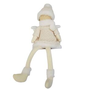 Menina sentada Coleção Scarf, estrutura em tecido com enchimento, perninhas de feltro, ;vestido de micros fios bege com dourado e ;cabelo de Sisal. O Cachecol, o gorro com pele branca e as ASINHAS, são um charme a parte que deixa ela ainda mais fofa e charmosa. Bonequinha confeccionada com materiais PREMIUM e acabamento finíssimo, linda, perfeita! ;