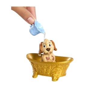 A Princesa Bela da Disney está pronta para dar banho e escovar seu adorável cachorrinho com estilo! Este conjunto, inspirado nos personagens do filme de animação "A Bela e a Fera", inclui uma boneca da Bela na cor característica da princesa e um cachorrinho adorável que precisa urgentemente de um banho. Com a banheira, a toalha e um pouco de água morna, as crianças podem "limpar" o cachorrinho com a mágica da mudança de cor.