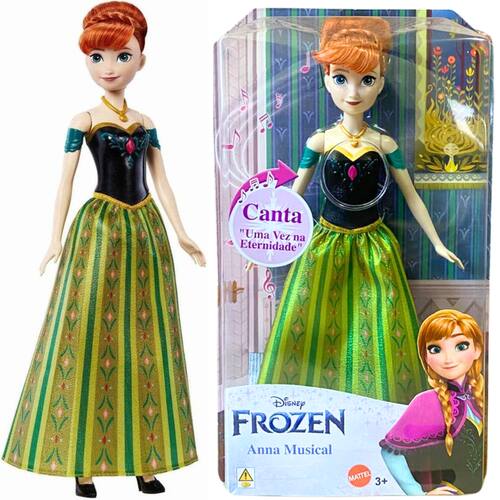Marca: Disney Princesas Modelo: Frozen Anna Musical Modelo Alfanumérico: HPD94 Material: Plástico Personagem: Anna Tamanho: 30cm Selo do Inmetro: 004974/2021 Idade recomendada: 3 anos. Garantia: 3 meses Fabricante: Disney