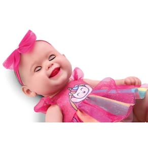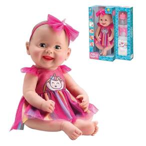 Conteúdo da Embalagem: 01 Boneca, 01 Mamadeira Mágica, 01 Fralda descartável, 01 Chupeta