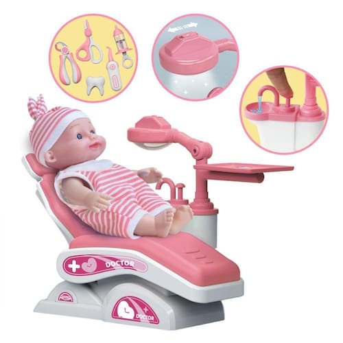 Destaques Realistas: - Cadeira Reclinável: Ajuste como em consultórios reais - Sistema Hidráulico: Torneira libera água de verdade - Boneca Articulada: Braços e pernas móveis para exames completos - Acessórios Detalhados: Réplicas fiéis de instrumentos odontológicos - Efeitos de Luz: Iluminação especial para procedimentos