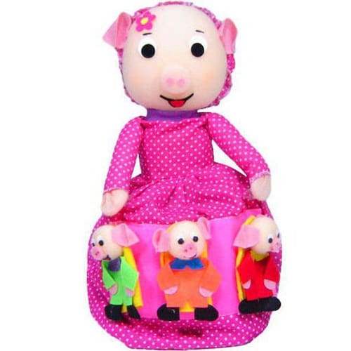 Boneca Dupla Face Porquinha/Lobo E Os 3 Porquinhos Dedoches
