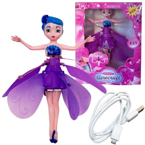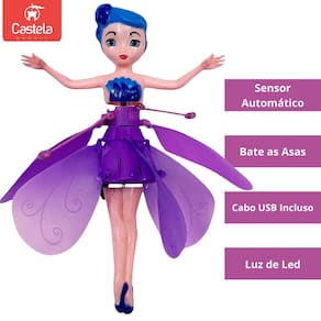 Para você que tem uma princesinha em casa, não pode deixar de presenteá-la com essa boneca. A fada mágica gira e voa e tem um sensor que você coloca sua mão embaixo da boneca para mantê-la no ar. Ela detecta continuamente sua mão e se afasta dela. Será uma experiência única brincar com essa boneca. A tecnologia de sensor pode detectar objetos próximos e pode ser programado para ficar longe deles. Adquira já. Produto não acompanha controle remoto, pois não precisa de controle para funcionar Características: - duração do voo: cerca de 06 minutos. - produto com peças para montar, apenas algumas pétalas que servem de hélices para que a boneca voe . - direção: para cima e para baixo. - voa cerca de 3 metros. - não possui controle remoto, somente indução pela mão. - carregamento: porta de carregamento usb - método de controle: indução - fonte de alimentação: bateria carregável - produto não acompanha controle remoto