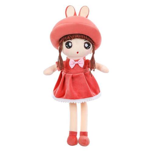 Material: pelúcia Tamanho: 65 cm Peso: 320 g Charming Bunny Ear Design — Esta boneca de pelúcia inspirada em desenhos animados apresenta um lindo vestido vermelho e um chapéu com orelhas de coelho macias, adicionando um toque divertido à sua aparência geral. Tecido de pelúcia macio e fofinho — Feito de materiais de pelúcia premium e enchimento de algodão, oferecendo uma textura suave e agradável à pele para as crianças abraçarem e carregarem. Tamanho grande de 65 cm para versatilidade — perfeito como companheiro de carinho na hora de dormir, companheiro de brincadeira ou decoração adorável para o quarto ou berçário de uma menina. Estilo e acessórios detalhados — Com cabelos trançados, olhos grandes e brilhantes, gravata borboleta rosa e sapatos vermelhos, esta boneca exala personalidade e estilo. Seguro e durável para brincadeiras diárias — Feito com costura reforçada e tecido seguro para crianças, adequado para crianças se aconchegarem, exibirem ou brincarem diariamente.