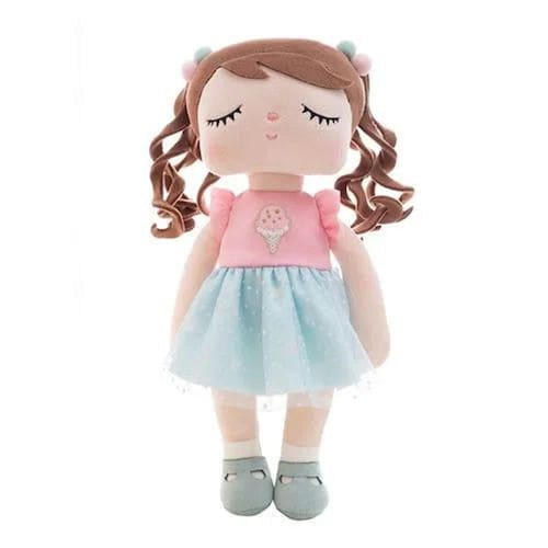 Chegou uma das bonecas mais pedidas: a Angela Cacheada! A Boneca Metoo Angela Candy School foi desenvolvida exclusivamente para o Brasil e é indicada para crianças de todas as idades. Feita inteiramente em pelúcia, vem com uma camiseta de manguinhas em cetim e bordado de sorvete; a saia azul é estampada com bolinhas coloridas e coberta com tule e detalhes em pompom. O sapatinho com a meia branca e os pompons no cabelo dão todo um charme para a nossa Candy! Uma excelente opção para decorar ambientes infantis e presentear crianças e bebês. Perfeita para dormir abraçadinha, os bebês adoram. E o melhor: são colecionáveis. Não deixe de conferir os outros designs.