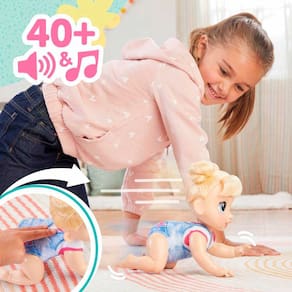 Boneca Interativa - Baby Alive - Engatinha e Brinca - Harper Hugs - Hasbro: Harper Hugs mal pode esperar para brincar. Uma boneca que engatinha de verdade. Basta apertar o botão nas suas costas para ver a boneca engatinhar e emitir sons adoráveis. Esta fofura é uma boneca com acessórios que também incluem uma escova para seu cabelo macio e estiloso. Detalhes: • Ela possui 27 cm e emite mais de 40 sons diferentes, incluindo música divertida. Esta boneca interativa reproduz muitos efeitos sonoros fofos, como ficar animada para engatinhar, comer e rir enquanto anda • Basta dar a mamadeira em sua boca para que a boneca emita sons de comidinha • Amiga abelha que voa: movimente a abelha de brinquedo pelo chão e observe suas asas batendo para cima e para baixo. É muito divertido contar histórias com os acessórios da boneca • Movimenta e dança: Pegue-a boneca no colo e pressione e segure o botão nas costas dela para iniciar uma melodia musical de 12 segundos e fazer seus braços e pernas balançarem como se ela estivesse dançando • Cabelo macio e estiloso: Esta boneca vem com uma escova para pentear os seus cabelos macios e fofos. Ela é uma boneca com cabelo que pode ser escovado e estilizado, além de um macacão removível Informações: • Produto: Boneca Baby Alive Loira Harper Hugs Engatinha e Brinca • Marca: Hasbro • Coleção: Baby Alive • Linha: Baby Alive Engatinha e Brinca • Personagem: Harper Hugs • Tipo: Boneca Bebê Interativa com Acessórios • Categoria: Bonecas e Cia • Tamanho: 27 cm (altura) • Conteúdo: - 01 Boneca Interativa - 01 macacão removível - 01 brinquedo de abelha rolante - 01 copo com canudinho - 01 escova de pentear cabelo • Recomendação: para crianças a partir de 03 anos de idade Especificações: • Modelo: Baby Alive Crawl ‘n Play Harper Hugs • Referência: F9709 • Código de Barras: 5010996271945 • Embalagem (C x A x L): 31 x 35 x 14 cm • Embalagem (Peso): 0.983 kg • Funcionamento: Requer 04 pilhas AA (não incluídas) • Material / Composição: Plástico, Vinil e Tecido • Registro: IFBQ 08845-01/2021 • Certificado: Órgãos Autorizados - OCP´S (Organismos de Certificação de Produtos) Aviso: • As imagens são meramente ilustrativas • Os pesos, tamanhos e medidas são aproximados • As cores e estampas dos produtos podem ter variações • As informações são de responsabilidade do fabricante ou fornecedor