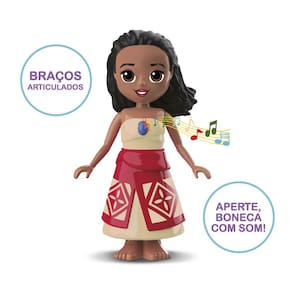 Prepare-se para viver aventuras incríveis com Moana! Com essa boneca a imaginação das crianças vai muito mais longe, cheia de diversão, coragem e descobertas! Aperte o botão no peito e ouça frases autênticos do filme Moana 2, que deixam a brincadeira ainda mais divertida e ela ainda tem braços articulados.