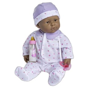 JC Toys - La Baby - Boneca hispânica de corpo macio de 20 polegadas - Lavável - Roupa roxa removível com chapéu e chupeta - Para crianças de 2 anos ou mais - O tamanho perfeito para todas as crianças - Com 20 polegadas, La Baby é grande e abraçável, mas leve o suficiente e fácil de segurar, transportar e abraçar. Sem perfume e lavável para facilitar o cuidado — Detalhes requintados dão vida ao bebê — La Baby desperta a imaginação de uma criança com cabeça, braços e pernas de vinil macio; olhos brilhantes e brilhantes; bochechas macias do bebê; dedos das mãos e pés delicados; e cabelos finamente esculpidos e finamente esculpidos — MACIOS, DURÁVEIS E PRONTOS PARA MUITAS BRINCADEIRAS CRIATIVAS — O La Baby é fácil de vestir com um lindo chapéu roxo e combinar com um dorminhoco um fecho de fixação automática. Chega com chupeta própria para ajudar a colocar o bebê para dormir - SELO DE APROVAÇÃO DO CENTRO NACIONAL DE PAIS - O La Baby é aprovado pelo NPC, um programa de testes independente que identifica “os melhores produtos e serviços comercializados para o público de pais/filhos” - TESTADO DE SEGURANÇA - Aprovado para crianças de meses ou mais. A chupeta é presa à roupa; sem botões ou zíperes nas roupas. Sem cílios ou pálpebras abertas e fechadas. Como todas as nossas bonecas, a La Baby é livre de BPA e ftalatos