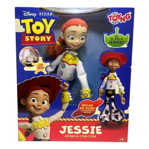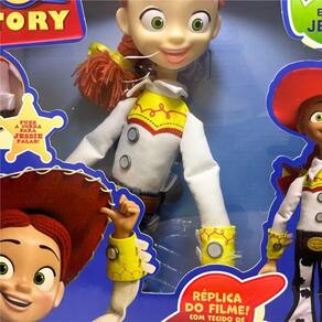 Diretamente do universo de Toy Story, essa boneca da Jessie é praticamente uma vaqueira pronta pra sair cavalgando pela sua coleção! Feita em tecido, igualzinha à do filme, ela traz todos os detalhes que fazem da Jessie a cowgirl mais animada do velho oeste (e do quarto também). E claro, não podia faltar o clássico: é só puxar a cordinha que ela solta frases cheias de energia — porque Jessie não sabe ser discreta nem quando tenta! Perfeita pra quem quer reviver as aventuras ao lado do Woody e companhia, ou simplesmente ter uma dose diária de alegria em forma de brinquedo. Mede aproximadamente 38 cm altura.