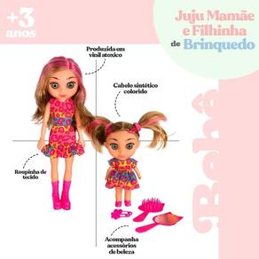 Boneca Juju Mommy Mamãe E Filhinha Com Acessórios Essa boneca traz todo o encanto e magia para sua brincadeira. Com ela vc vai brincar de Mamãe e Filhinha onde uma é a cara da outra trazendo para a brincadeira mais realismo. além de lindas, possuem lindos acessorios tudo para tornar sua brincadeira mais divertida, a criançada poderá soltar a imaginação e deixar a brincadeira muito mais agradável. -não Recomendável para menores de 03 anos por conter partes pequenas que podem ser engolidas. especificações:material: Polietileno, Vinil e Roupa em TecidoDimensões:Boneca Mamãe: Alt.: 31cm x Larg.: 9cmBoneca Filhinha : Alt.: 18cm x Larg.: 7cm Peso:Boneca Mamãe: Aprox. 121gboneca Filhinha: Aprox. 80g a boneca conta com:01 - Escova de cabelo01 - Espelho02 - presilha de cabelo Contém:Boneca Juju Mommy Mamãe E Filhinha Com Acessórios Homologação Inmetro: IP-BRI-0568/2021-03 Marca: Não Informado Ean: 7898064927134