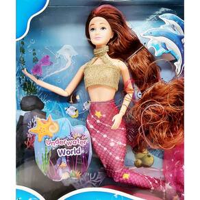 Boneca Kaibibi Sereia Mundo da Água Cabelo Castanho.