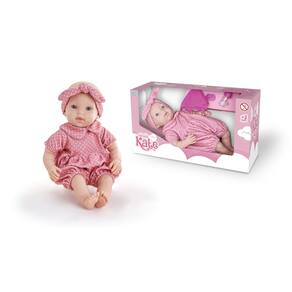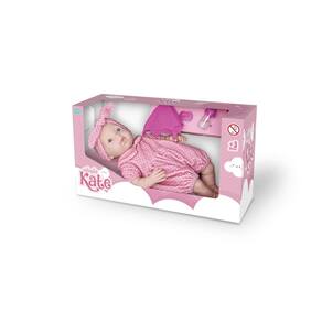 01 Boneca Kate Cuidados (42 cm) em posição deitada 01 Mamadeira 01 Chupeta 01 Fralda