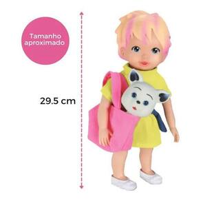 Características: Marca: Roma Modelo: Boneca Lari And Me Collection Acessorios: Bolsinha, Vestido, Cachorrinho Pet Dimensoes: Altura: 38cm - Comprimento: 23cm Tema: Passeio Pet
