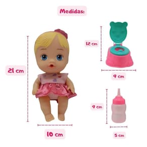 Principais Atributos: -higiene Divertida: Vem com uma privadinha para ensinar sobre o uso correto do banheiro durante a brincadeira. -acessórios Essenciais: Inclui uma mamadeira para alimentar a boneca e uma fraldinha para quando ela faz xixi. -escolha o Estilo: Disponível em dois modelos lindos, loira e morena, permitindo escolher o que mais agrada. -experiência Educativa: Promove o aprendizado de conceitos básicos de cuidados pessoais e responsabilidade. -segurança em Primeiro Lugar: Confeccionada com materiais de qualidade e segurança testada, garantindo a tranquilidade dos pais.