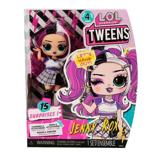 Surpresa L.O.L.! Boneca moderna Tweens Series 4 Jenny Rox com 15 surpresas e acessórios fabulosos — Ótimo presente para crianças de 4 anos ou mais — Em tamanhos intermediários: Jenny Rox tem traços deslumbrantes, cabelos lindos, sua própria roupa fabulosa e vem articulada para inúmeras oportunidades de posar. - MODA FEROZ: vista Jenny Rox com roupas e acessórios exclusivos para mostrar seu estilo rockstar, incluindo polainas estilosas, uma saia xadrez moderna e uma blusa chique em camadas! Dica profissional: as mãos são removíveis para facilitar o uso. - DESCUBRA 15 SURPRESAS, incluindo uma boneca de moda para adolescentes, roupas ferozes, sapatos, acessórios, grampos de cabelo, brincos, um colar, uma bolsa, um microfone, uma escova de cabelo e um suporte para bonecas. - BFFs 4 EVA: Colecione todas as 4 bonecas elegantes da série 4 L.O.L. Surprise Tweens: Jenny Rox, Ali Dance, Olivia Flutter e Darcy Blush! Marca: Não Informado