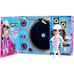 Apresentando Lonestar: Lonestar é apenas uma gurl country desde seu chapéu de vaqueira até seus esporões, e ela tem características deslumbrantes, cabelo bonito e penteado e seu próprio estilo de vaqueira. Ela está pronta para o melhor show – a turnê So Extra. Giddy Up. Vamos remisturar: Lonestar tem 2 roupas de moda country que ela traz com ela enquanto faz apresentações no palco com confiança. Misture e combine moda com sua boneca licious BFF, LOL Surprise OMG. Ela também tem sua guitarra acústica preta para se destacar. Gire antes de jogar: os ensaios são agora mais divertidos. Lonestar permite que você gire seu disco de tamanho normal para reproduzir um clipe de música no pacote. Cante com ela. As letras estão na revista que está incluída e revela a obra-prima de Lonestar. Bata uma posse: vá à passarela com confiança com Lonestar e amigos. Esta boneca LOL Surprise OMG também inclui um suporte de boneca para que ela possa levar onde quer que sua moda a leve a qualquer momento. Dica: As mãos dela são removíveis para facilitar a colocação. Colecione todas as quatro bonecas LOL SURPRESE OMG REMIX FASHION : cada uma tem seu próprio estilo de música: Country, R&B, Pop e Hip Hop. Cada pequena boneca vem com 25 surpresas incluindo 2 roupas. Misture e combine para muita diversão. (Cada boneca é vendida separadamente).