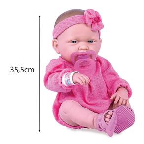 Boneca Love Bebe By Cotiplás Acessórios A Boneca Bebe Love Bebe By Acessórios Cotiplas é mais do que apenas uma boneca - ela é uma adorável amiga que se parece e se sente como um bebê de verdade. Com 35,5cm de altura, ela é do tamanho perfeito para abraçar e carregar, proporcionando uma experiência de brincadeira envolvente e realista. Sua suavidade e delicadeza são cativantes, convidando as crianças a acariciarem e cuidarem dela com todo o carinho do mundo. Além disso, ela é perfumada, adicionando um toque extra de realismo e encanto às brincadeiras. Com traços delicados e uma expressão doce, esta boneca é uma representação fiel de um bebê recém-nascido, o que a torna ainda mais irresistível para os pequenos. Ao interagir com ela, as crianças desenvolvem habilidades de cuidado e empatia, criando laços afetivos e estimulando a imaginação de forma genuína. Acompanhada por uma variedade de acessórios essenciais, ela está pronta para cuidar e mimar como uma verdadeira bebê. Dentro da caixa, você encontrará: 1 Chupeta: Para acalmar e confortar a boneca, proporcionando uma sensação de segurança e tranquilidade. 1 Fralda: Perfeita para trocar e cuidar da boneca, simulando os momentos de cuidado e higiene que são tão importantes para os pequenos. 1 Par de Sapatos: Complementando o visual da boneca, esses sapatinhos adoráveis garantem que ela esteja sempre bem-vestida para qualquer aventura. 1 Pulseira de Maternidade: Um toque especial de realismo, esta pulseira permite que a criança se sinta como uma verdadeira mamãe ou papai, cuidando da sua "filhinha" com amor e carinho. Com esses acessórios inclusos, a Boneca Bebe Love Bebe By Acessórios Cotiplas oferece não apenas entretenimento, mas também oportunidades para desenvolver habilidades de cuidado, empatia e imaginação, tornando-a uma escolha perfeita para brincadeiras criativas e cheias de afeto.