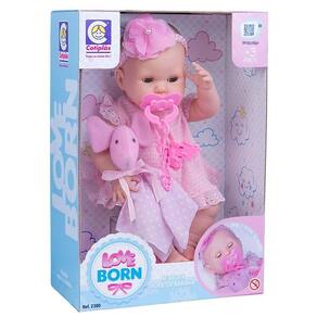 Com a Boneca Bebê - Love Born - Hora da Naninha - Cotiplás a diversão esta garantida. Boneca toda em vinil macio e perfumado , com olhos móveis, vem com uma naninha, chupeta e tiara.