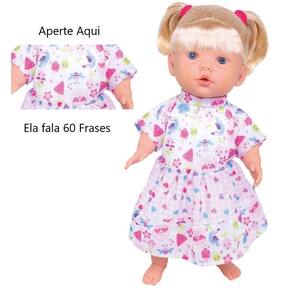 Boneca Marcelle 60 Frases Loira Milk Brinquedos    A Boneca Marcelle Frases Loira é perfeita para proporcionar momentos de interação e diversão para as crianças. Com 38cm de altura, esta boneca encantadora fala 60 frases, promovendo um vínculo emocional e estimulando o aprendizado de forma lúdica.   Feita com tecido macio, a Boneca Marcelle é agradável ao toque e proporciona conforto ao brincar. Suas frases são variadas e interagem com a criança, incentivando o desenvolvimento da comunicação, da empatia e da criatividade. Ideal para momentos de brincadeira, aprendizado e afeto, a boneca ajuda no desenvolvimento emocional e social das crianças.   Com um mecanismo de fácil utilização, basta apertar o botão para que a boneca comece a falar suas frases divertidas e educativas, tornando a brincadeira ainda mais envolvente. A Boneca Marcelle Loira é a companheira ideal para estimular o desenvolvimento cognitivo e emocional das pequenas.   Especificações:  - Fabricante: Milk - Referência: 675 - Medidas Aproximadas da Boneca: 38CM - Composição: Enchimento de fibra, tecido e vinil - Idade Recomendada: +3 Anos - Utiliza 3 baterias lithium AG13/LR44 1,5V - EAN: 7898283856758 - Registro 001524/2019 OCP 0006 - Compulsório INMETRO   Contém: - 1 Boneca Marcelle Loira