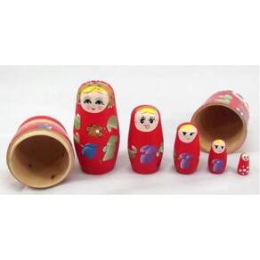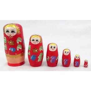 Boneca Matrioska Vermelho02 Conjunto com 6 Peças Que Se Encaixam uma Dentro da Outra em Madeira Pintura Manual Vermelho