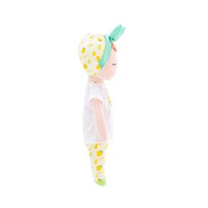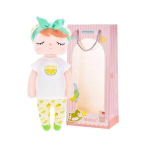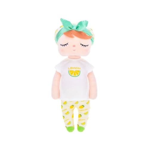 Boneca Metoo Doll Angela Fruta Limão 33cm - Metoo A Boneca Metoo Doll Angela Fruta Limão é encantadora com sua roupinha temática de frutas e um laço lindo na cabecinha A boneca Angela possui olhos sonolentos e bochechas rosadas. São bonecas feitas em pelúcia extremamente macia de plush antialérgico, sendo uma excelente opção para decorar ambientes infantis e presentear crianças e bebês, além de ser perfeita para dormir abraçadinho. Os bebês adoram tê-las como naninhas Não deixe de conferir todos os modelos de bonecas Metoo, é um mais lindo que o outro e são colecionáveis