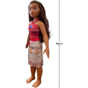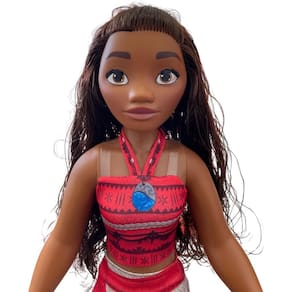 A Boneca Moana tem 55 cm de altura e será a amiga perfeita para as mais diversas aventuras das meninas! Vem acompanhada de um lindo Colar para criança usar! Tem cabelo comprido, veste um lindo vestido e a expressão dos olhos marcam a encantadora Moana dos contos Disney!