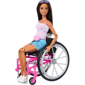 Boneca moderna Barbie Brunette com cão de serviço, cadeira de rodas e acessórios
