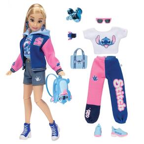 Disney ILY 4ever Fashion Dolls Stitch inspirada em uma jaqueta universitária de 11,5 polegadas de altura com 13 pontos de articulação, duas roupas completas que combinam e um anel Mickey brilhante para você usar!