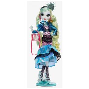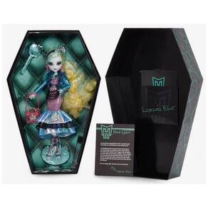 Conteúdo da caixa: 1 boneca Lagoona Blue, acessórios (vestido, jaqueta, sapatos, meias, bolsa, cinto, tiara, colar), escova Skullette, diário colecionável, certificado de autenticidade, manual do usuário