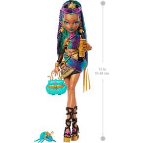 - Monster High A boneca Nefera De Nile é uma múmia ferozmente moderna com um coração de ouro! Ela vem com um doce animal de estimação assustador e muitos acessórios glamorosos.