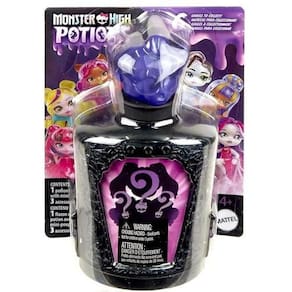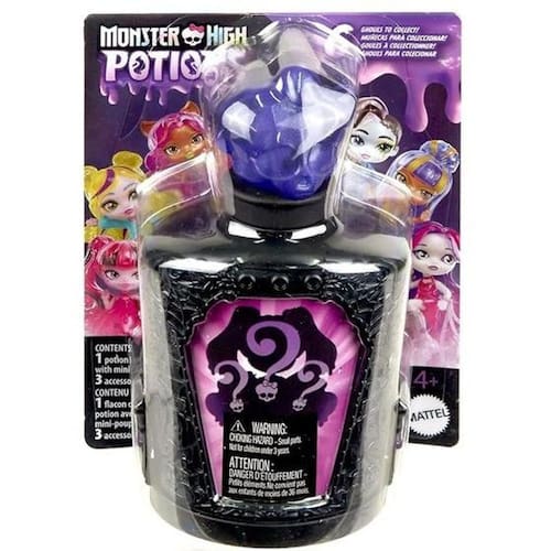Qual segredol será revelado Cada garrafa de Poções Monster High esconde uma miniboneca de um personagem Monster High! Abra a tampa do frasco com caveira de cristal para descobrir pequenos encantos!