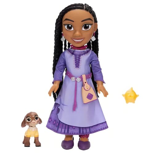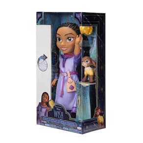 A Boneca Asha tem cerca de 35 cm de altura e vem com duas pequenas figuras. Ela te transporta para uma experiência musical mágica! Sua bela vestimenta e cabelos longos e brilhantes deixam a brincadeira mais encantada. Ela fala 20 frases e inclui uma estrela dos desejos que brilha enquanto as crianças cantam com a Asha.