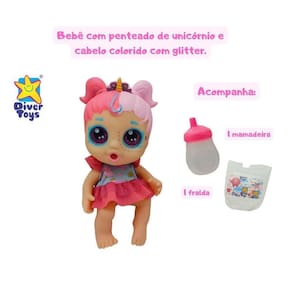 Boneca My Little Glitter Faz Xixi Mamadeira e Fraldinha - Divertoys