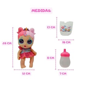 Encantos da Boneca My Little Glitter: -estilos Únicos: Escolha entre Mod 1 com cabelo metade pink e metade rosa além de lindos olhos Glitter na cor Rosa, ou Mod 2 com cabelo metade azul e metade pink além de lindos olhos Glitter na cor Azul, ambas com detalhes que brilham e fascinam. -interatividade Realista: Após dar de beber na mamadeira, a boneca faz xixi de verdade, uma excelente maneira de ensinar sobre higiene e cuidados básicos. -inclui Acessórios: A mamadeira e fraldinha incluídos ampliam o realismo da brincadeira. -estímulo a Imaginação e Cuidado: Ideal para encorajar brincadeiras de faz de conta e a prática de habilidades de cuidado e responsabilidade. -qualidade e Segurança: Feita com materiais de alta qualidade, garantindo segurança durante o brincar.