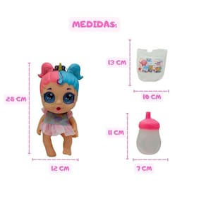 Encantos da Boneca My Little Glitter: -estilos Únicos: Escolha entre Mod 1 com cabelo metade pink e metade rosa além de lindos olhos Glitter na cor Rosa, ou Mod 2 com cabelo metade azul e metade pink além de lindos olhos Glitter na cor Azul, ambas com detalhes que brilham e fascinam. -interatividade Realista: Após dar de beber na mamadeira, a boneca faz xixi de verdade, uma excelente maneira de ensinar sobre higiene e cuidados básicos. -inclui Acessórios: A mamadeira e fraldinha incluídos ampliam o realismo da brincadeira. -estímulo a Imaginação e Cuidado: Ideal para encorajar brincadeiras de faz de conta e a prática de habilidades de cuidado e responsabilidade. -qualidade e Segurança: Feita com materiais de alta qualidade, garantindo segurança durante o brincar.