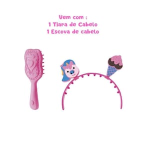 -estilize com Acessórios: Acompanha uma tiara linda e uma escova de cabelo para que as crianças possam praticar suas habilidades e deixar a boneca ainda mais linda.