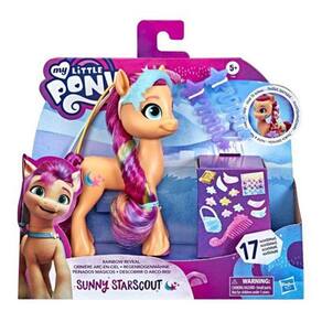 Sunny Starscout é uma pônei aventureira de Maretime Bay A figura de 16,5 cm tem cabelo rosa e cutie mark de estrela cadente Crianças a partir dos 5 anos podem imaginar as incríveis aventuras de amizade com os brinquedos, figuras e acessórios My Little Pony: A New Generation (vendidos separadamente, sujeitos à disponibilidade)