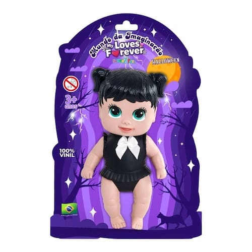 Informações do Produto: Brincar de boneca é uma das principais atividades para estimular a imaginação infantil. Modelo inspirado no halloween.