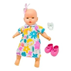 Pensada para ser um presente marcante, ela inclui acessórios encantadores como uma chupeta delicada, um par de sapatinhos e até uma pulseirinha complementos que enriquecem o universo afetivo da brincadeira e elevam a experiência lúdica.Com altura de 44 cm, é ideal para crianças a partir de 3 anos, sendo robusta e segura para manuseio e abraços prolongados.